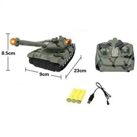RC Remote Control Tank je uzbudljiva i spektakularna igračka koja pruža pravo tenkovsko iskustvo. Sa svojom veličinom od 23 cm, ovaj spremnik na daljinsko upravljanje je kompaktan i jednostavan za korištenje. Uz pomoć RC sustava daljinskog upravljanja možete ostvariti potpunu kontrolu nad spremnikom. Upravljajte spremnikom naprijed, natrag, desno ili lijevo i uživajte u realističnom kretanju. Daljinski upravljač ima ergonomski dizajn, tako da možete jednostavno kontrolirati spremnik. Tenk je opremljen svjetlosnim efektima koji igru ​​čine još spektakularnijom. Bljeskajuća svjetla i zvučni efekti stvaraju pravu tenkovsku atmosferu u koju možete biti potpuno uronjeni. Snažan i izdržljiv dizajn osigurava dug radni vijek i dugotrajno iskustvo igranja. Tenk se kreće precizno i ​​može prijeći prepreke, tako da možete izvoditi impresivne akcije s njim. Otkrijte RC Remote Control Tank sa svjetlosnim efektima, u kojem se susreću igra i realistična iskustva. Oslobodite svoj smisao za avanturu i otkrijte što ovaj mali, ali moćni tenk može!