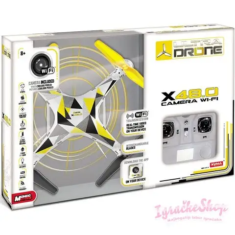 X48.0 Quadrocopter s Wifi kamerom je izvrstan izbor ako želiš za vrijeme leta snimati i snimljeno vidjeti u realnom vremenu, dakle imati prijenos uživo onoga što dron upravo snima. Quadrocopter je opremljen kamerom koja se s dronom može sinkronizirati pomoću aplikacije za smartphone. Ovaj quadrocopter je odličan izbor ne samo zbog kamere, nego i zato što je njime lako upravljati pa je prikladan i za početnike. Osim toga, ako s daljinskim upravljačem izađemo iz dometa drona, on se automatski vraća u polje djelovanja. Izvedba je robustna, a o stabilnosti leta brine se žiroskop. Dron radi na frekvenciji od 2,4 GHz, a daljinski upravljač je udoban za držanje i baratanje. Zahvaljujući 4 kanala, quadrocopter možemo za vrijeme leta pomicati u svim smjerovima. Pogodan je i za vanjsku i unutarnju uporabu.