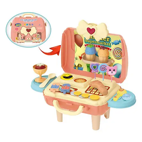Nabavite svom djetetu uzbudljiv set za supermarkete sladoleda sa raznim sladoledima, lizalicama i još mnogo toga. Set se nalazi u kompaktnom i prijenosnom koferu koji ima ručku i jednostavan za nošenje, tako da možete ponijeti novi set igračaka vašeg djeteta na put. Kofer sadrži ukupno 25 komponenti, uključujući niz sladoleda, lizalica i mnogih drugih slatkiša.