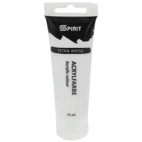 Bijela je jedna od najčešće korištenih boja, jer se koristi sa bezbroj oblika za posvjetljivanje drugih boja, zbog čega je ova tuba sa bijelom bojom zasigurno vrlo popularna. Izvrsna je sirovina za miješanje novih boja. Spirit-ovih sedamdeset i pet mililitra akrilne boje dobilo je vrlo praktično pakiranje u tubi koja omogućuje lako i precizno doziranje, boja idealnog izgleda bez štetnih tvari, ali zahvaljujući visokom sadržaju pigmenta dobro se pokriva, lako se miješa i brzo suši.