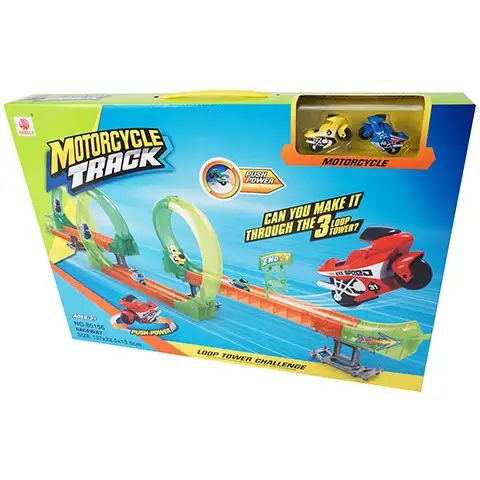 Ova fantastična staza vam pruža mogućnosti da pokažete razne trikove sa motorima! U ovom setu se nalazi staza koju ćete sami morati sastaviti ali i dva mala motora koja će vam odlično pomoći prilikom igre! Stazu ćete vrlo jednostavno sastaviti, nakon toga vas čeka jedna uzbudljiva vožnja. Motori koji se nalaze na slici, od njih dva komada ćete slučajnim odabirom dobiti.