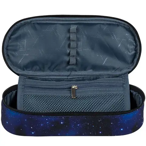 Ovaj držač za olovke evocira uzbudljivu atmosferu istraživanja svemira i astronomije svojom zvjezdastom osnovnom bojom i šavovima na vrhu. Možete biti sigurni da će ga rado koristiti svaki dječak koji je zainteresiran za istraživanje svemira ili astronomiju. Ovalni oblik je izuzetno praktičan jer u njega može stati mnogo papirnatog pribora. Na naslovnicu možete čak pričvrstiti olovke ili olovke koje najčešće koristite kako bi vam uvijek bile pri ruci kada vam zatrebaju. Manji dodaci također se mogu smjestiti u mrežasti unutarnji džep, tako da ih ne morate tražiti s dna držača olovke.