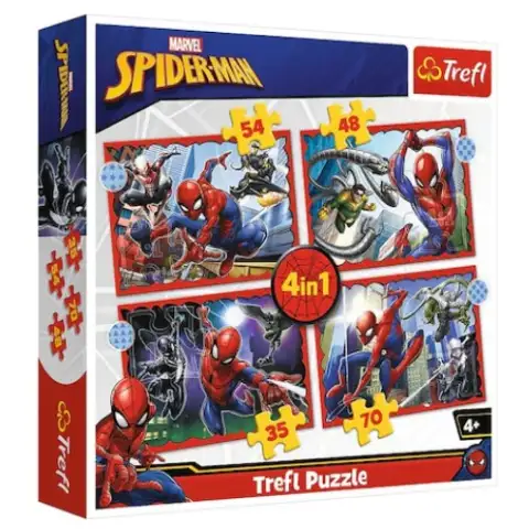 The Hero Spiderman 4 u 1 70-54-48-35 kom puzzle - TreflThe Hero Spiderman 4 u 1 70-54-48-35 kom puzzle - Trefl