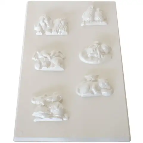 Može postojati bezbroj oblika kreativnih kreacija, ali jedan od najzanimljivijih je izrada kalupa od gipsa, koji će se zasigurno svidjeti djeci. U tom setu postoji šest oblika, a u svakom od njih može se promatrati skup parova od miševa do slonova. Upotreba kalupa izuzetno je jednostavna, jer sve što morate učiniti je pomiješati gips sa vodom kako bi se dobila približno razrijeđena gustoća kiselog vrhnja. Nakon toga, samo ga ulijte u kalup i pričekajte dok se potpuno ne stegne. Osušeni gips može se ukrašavati i bojati flomasterom ili bojom.