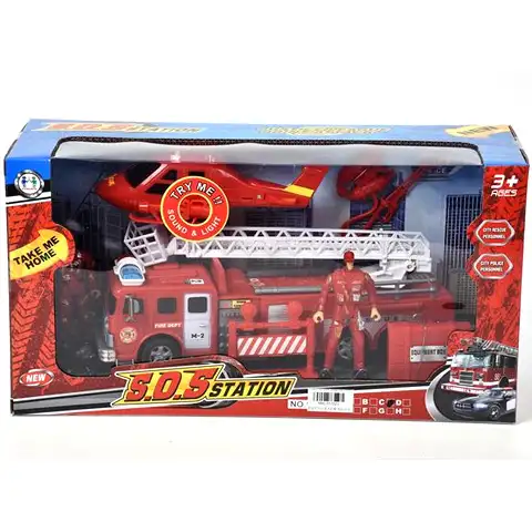Vatrogasni kamion i helikopter sa zvukom, svijetlom i figuramaVatrogasni kamion i helikopter sa zvukom, svijetlom i figurama