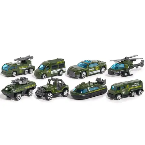 Ovaj paket vozila odličan je izbor za male dječake jer komplet uključuje osam elegantnih vojnih vozila koja se mogu koristiti za izmišljanje i igranje zaista uzbudljivih avantura, ali većina se čak može isprobati na postojećim trkalištima. Ovaj paket uključuje osam super vojnih vozila. Među klasičnom maslinovo zelenom borbenom opremom djeca mogu pronaći i helikopter, zračni jastuk, oklopni nosač trupa i otvoreni terenac. Mali automobili su baš poput pravih zahvaljujući detaljnoj izradi i slikanju.