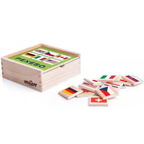 Memory igru već zasigurno dobro poznajete, ali sada vam stiže posve drugačije. Naime ova memory igra je izrađena od kvalitetnog drveta i ukrašena je raznim zastavama. Drvene igračke su najčešće didaktičke igračke koje su već godinama najtraženije igračke za djecu jer uz zabavu pružaju i pravilan razvoj kroz igru. Različite drvene didaktičke igračke utječu na razvoj fine motorike i logike. Različite boje pretvaraju didaktičke igračke u igre spretnosti, a kako su istovremeno i prostorne igre utjecat će na kvalitetnije snalaženje u prostoru kod djece.